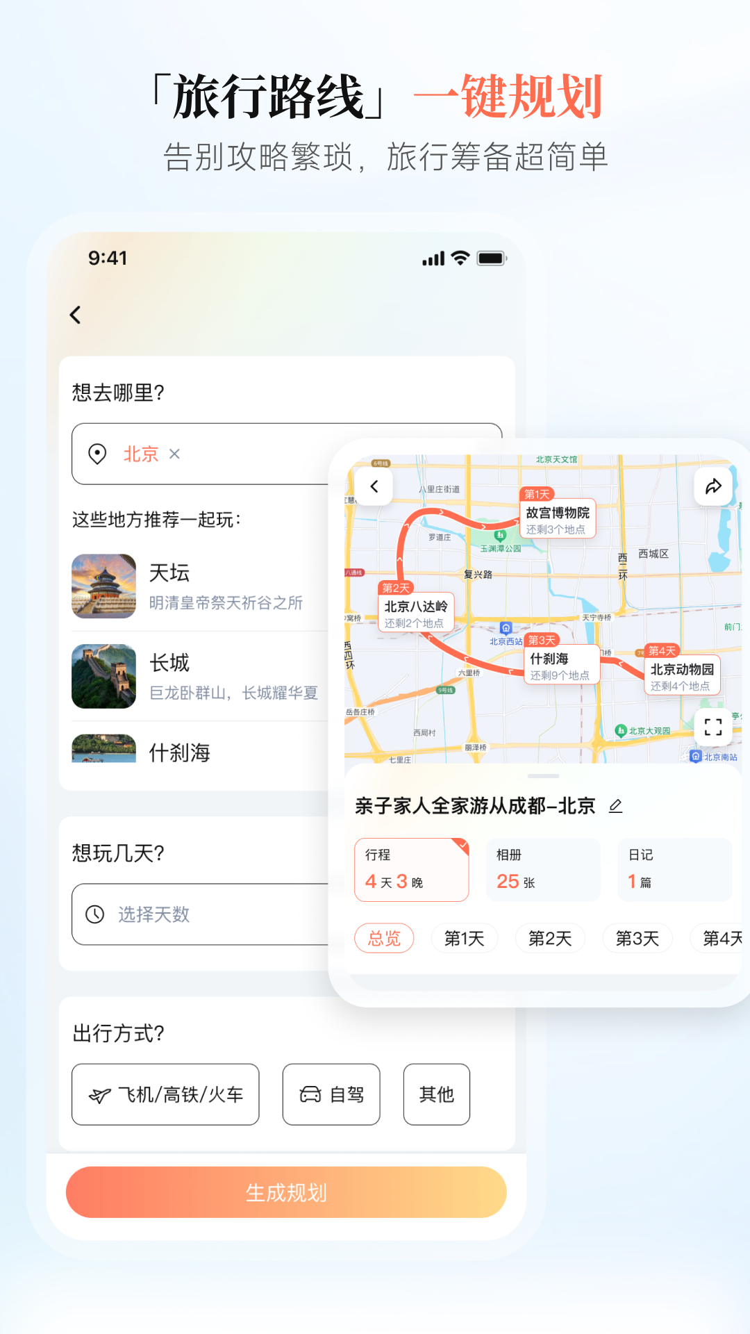自由行「行程规划 + 懒人适配」专业行程规划服务,为自由行、家庭游人群量身设计自驾 / 出行路线,沿途风景提前介绍、本地美食住宿精准推荐、游玩时间科学指引,解放双手,懒人也能轻松玩转各地。
