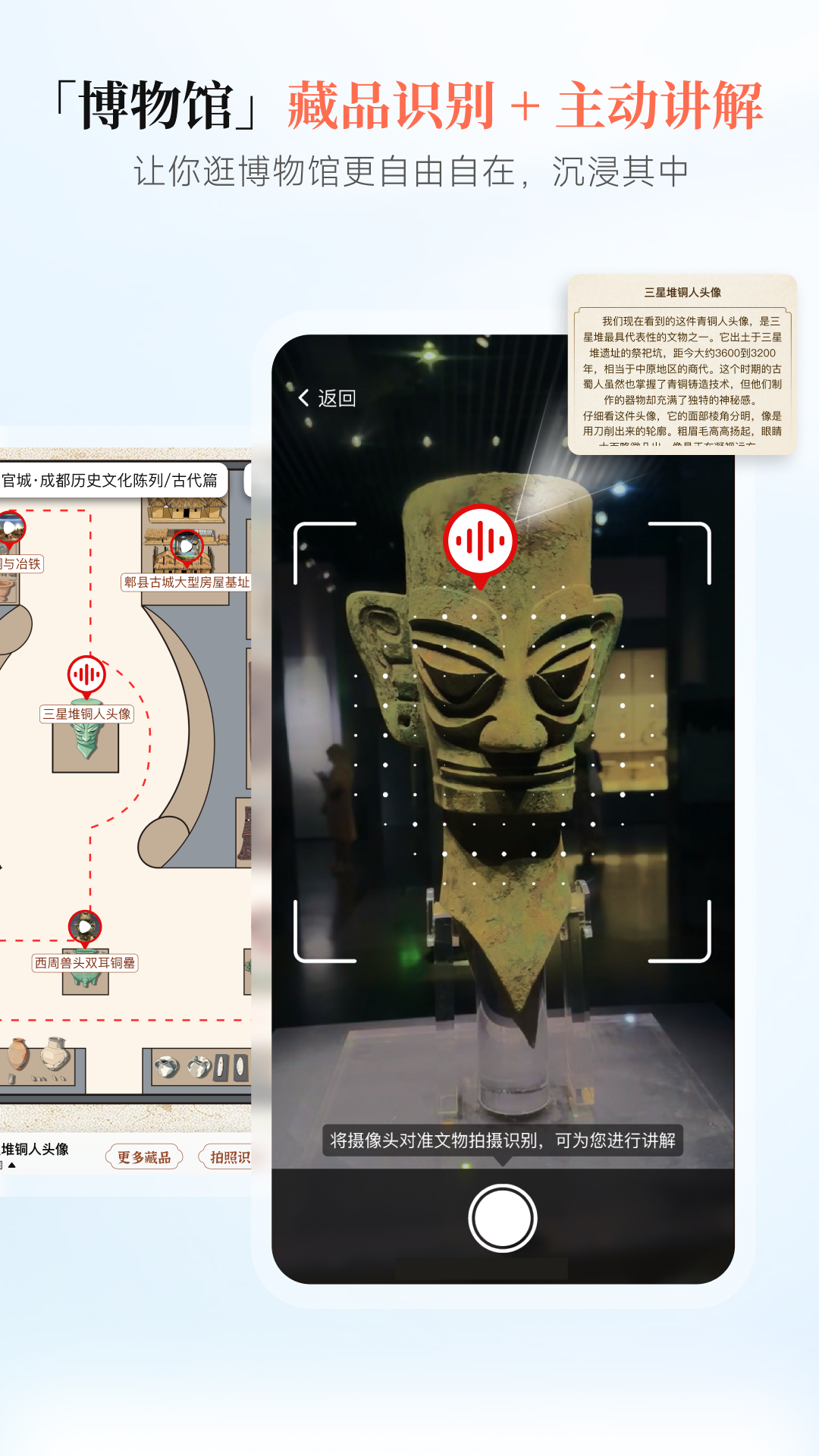 「文博精讲,深读文脉」专业文博内容创造者联合打磨内容,覆盖全球文博场馆(三星堆博物馆、长沙博物馆、上海博物馆、山东博物馆、宁波博物馆、成都博物馆、江西博物馆、河南博物馆...)、景区文博地标,馆藏瑰宝、历史典故精准解读,边走边播同步精讲,沉浸式读懂每一处文博景观的文化内核,让旅行不止看景,更懂背后的历史底蕴。