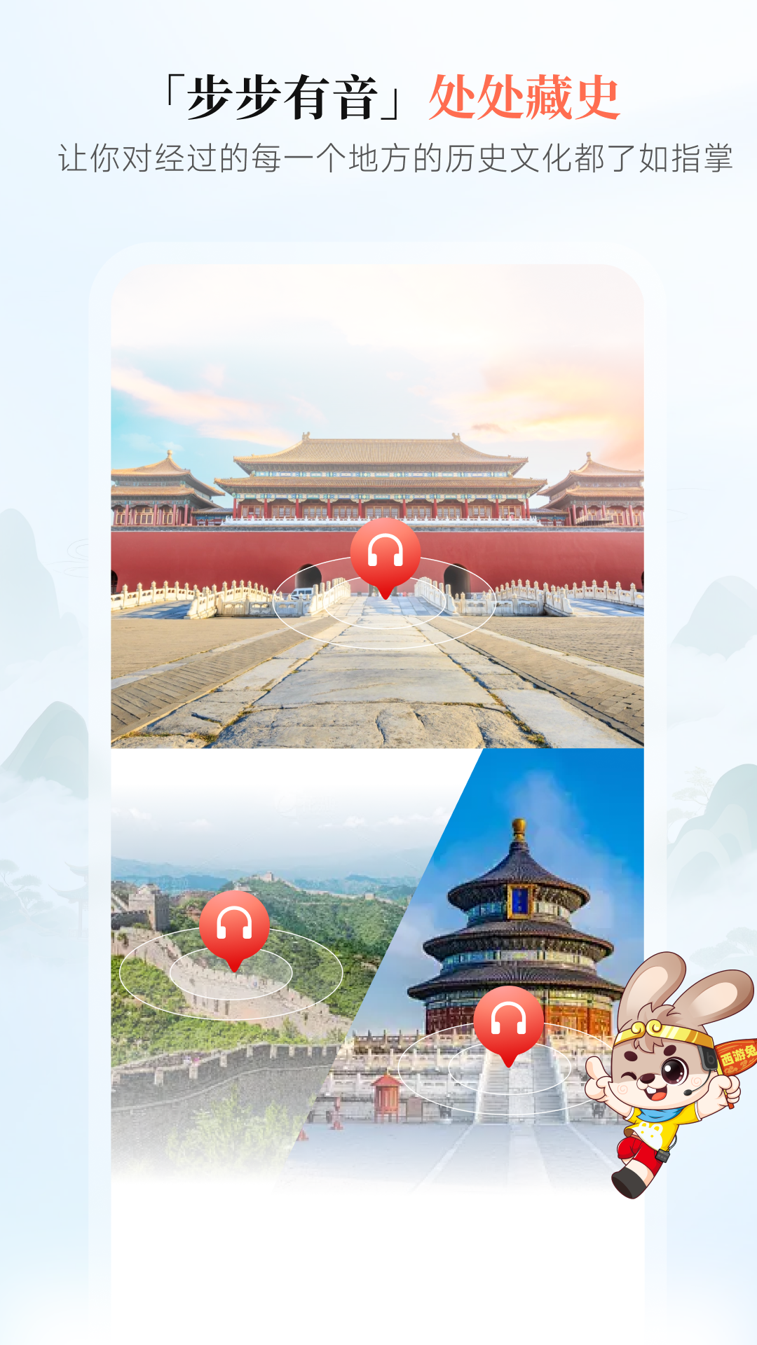 应用详情:景点百晓生,旅途好声音!西游兔 APP 深耕全球景区智能导览领域,以电子导游为核心定位,打造集景区导览、智能导览、语音讲解、文博精讲、自驾伴游、行程规划于一体的专业出行服务平台,为出行的每个人提供景区实时定位、边走边播、景区导航等沉浸式游览体验,让探索世界不再依赖地图与指南,做你口袋里的专属旅行专家,深入解锁每一处风景背后的历史文化与人文底蕴!