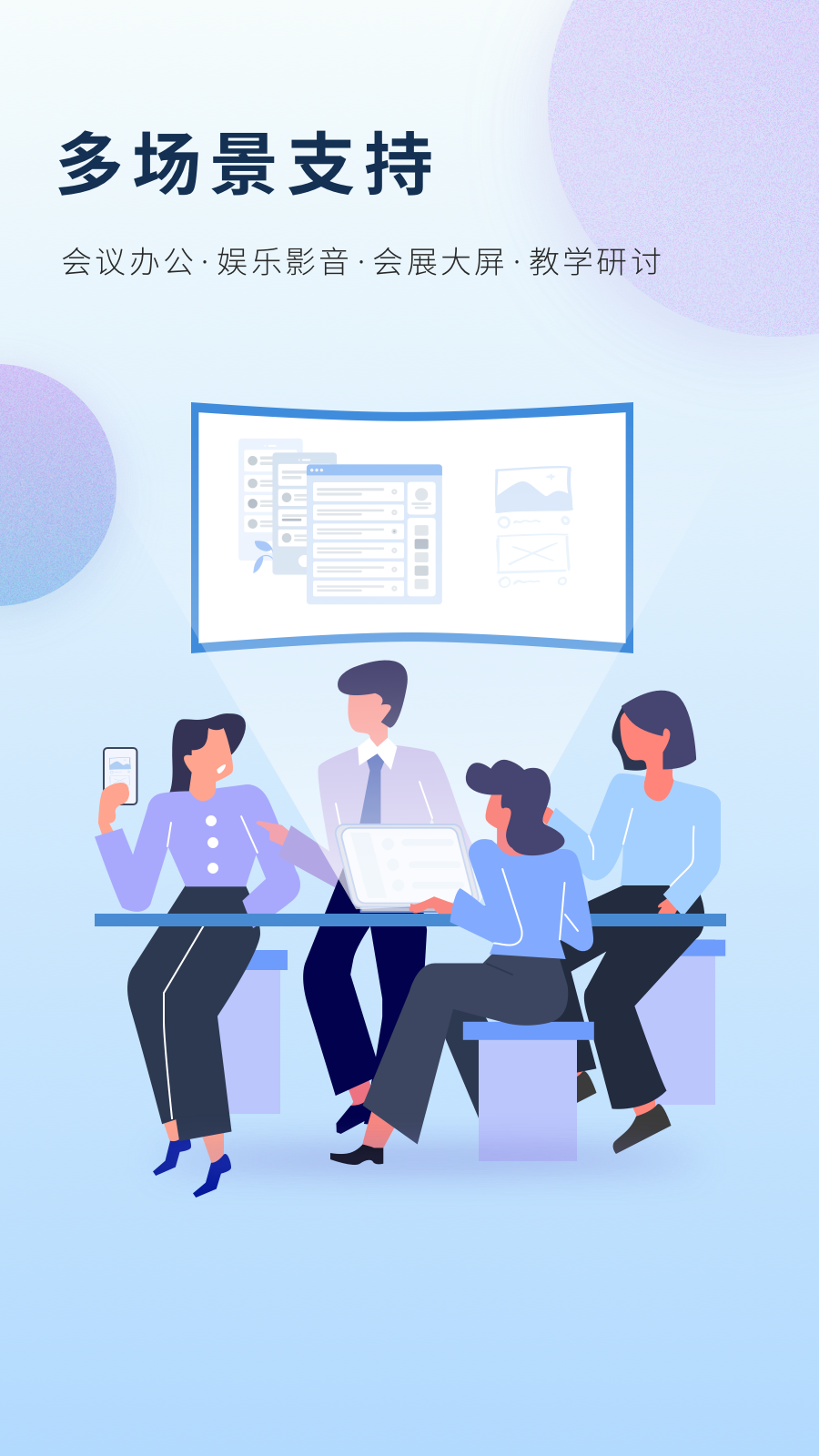 应用详情:手机/电脑投影电视解决方案,不受硬件和操作系统版本限制,无需额外配置,输入投屏码即可投屏;会议无线投屏,轻松连接,办公演示更高效;投屏码高效准确,高清镜像,低延迟;即安即用,轻松云端管理;支持内网部署,解决企业安全隐患。支持商业场景使用,例如会议,教务,内宣,商展,广告;可以集中,一键查询职场终端在线情况,屏显内容可分组配置。Win/Mac/电视客户端可从官网下载 https://www.wisecast.net/