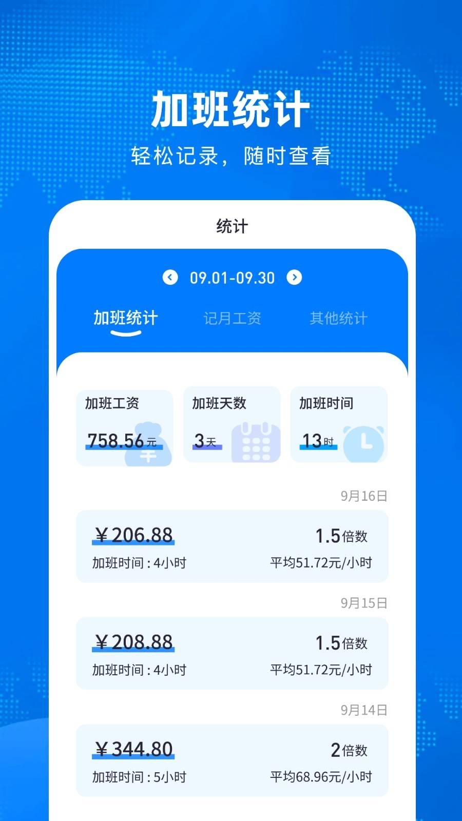 加班计算器APP,是您职场生涯中的得力助手。无论您是奋斗在一线的普通员工,还是负责人事管理的HR,都能从中受益。赶紧来下载吧~