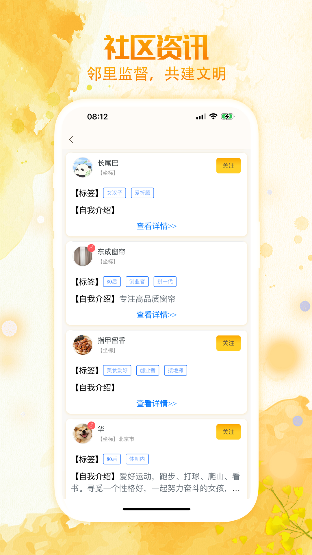 应用详情:居居小事·社群融合一款专为小区、村庄、学校及各类社群量身定制的综合性软件,连接每个社群的桥梁,让邻里之间、校友之间、社群成员之间的沟通更加顺畅,共同营造一个温馨、和谐、充满活力的生活环境。通过科技的力量,让社区不仅仅是居住的地方,更是心灵的归宿,让每个人都能在其中找到归属感和幸福感。