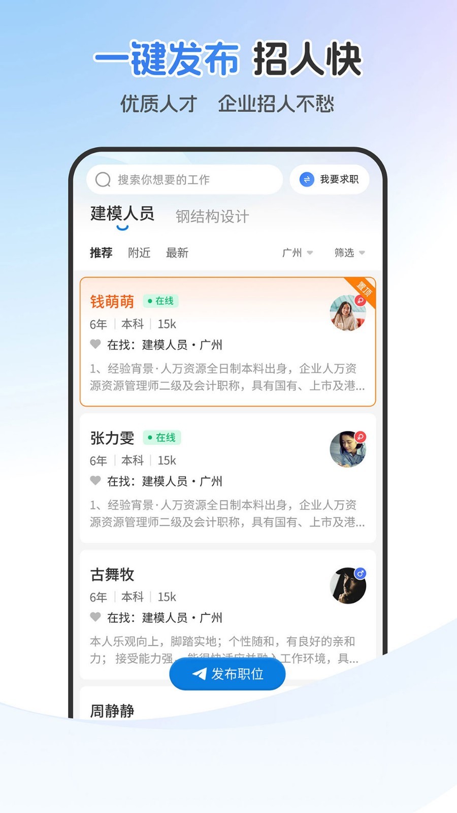 应用详情:建筑人才-建筑人的求职招聘APP,专注建筑行业招聘!降低企业招工成本,企业0成本发布岗位,无限畅聊!