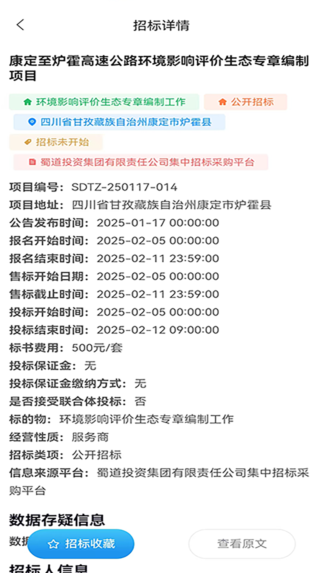 普策招标通过与众多官方、行业网站以及政府机构数据源建立深度连接,能够实时抓取并汇聚海量招投标信息。涵盖工程建设、货物采购、服务外包等各个领域,无论是大型基础设施项目招标,还是小型办公用品采购招标,都能在应用中及时呈现。信息内容包括招标项目名称、招标公告发布时间、投标截止时间、项目预算、招标要求等详细且关键的要素,为您提供全面且一站式的招投标信息资源库,使您无需在多个网站间频繁切换搜索,极大地节省了信息搜集时间。