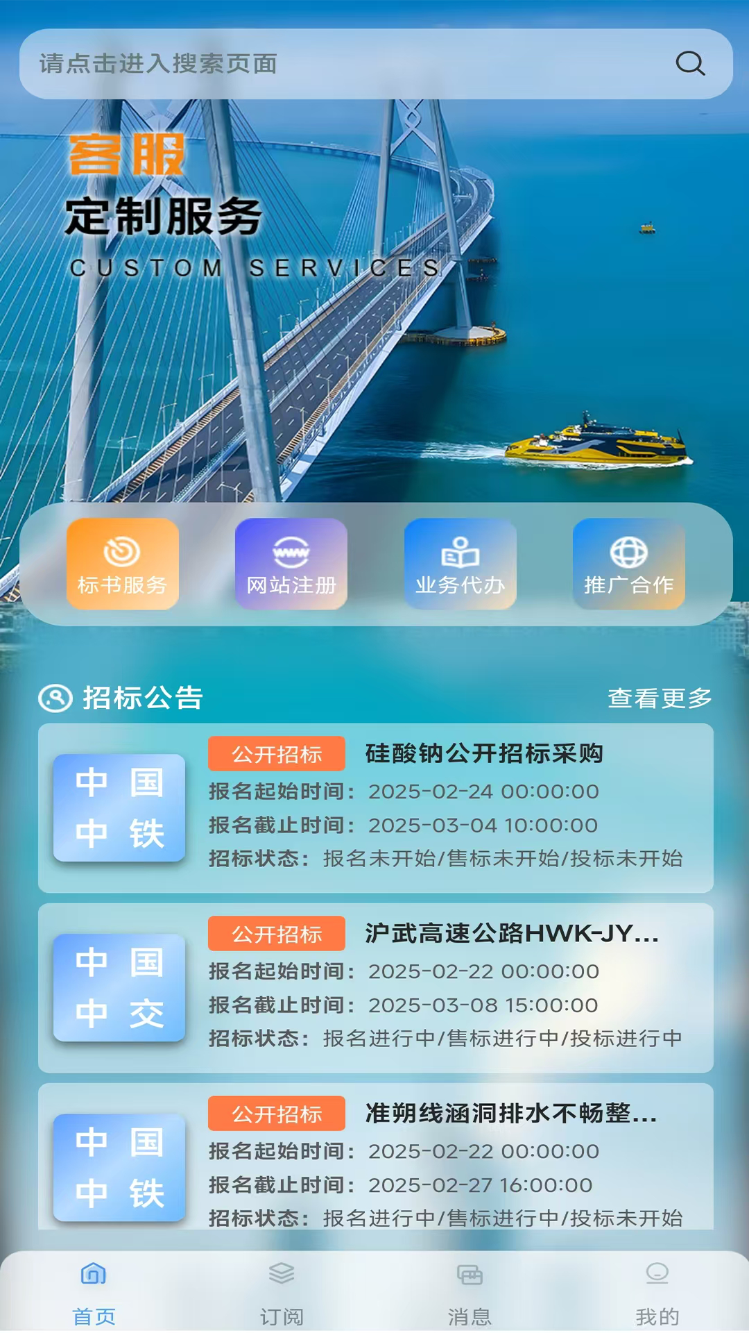 应用内置强大的智能筛选功能,您可依据自身业务需求,按照地区、行业、项目规模、招标时间等多维度条件进行筛选。例如,建筑企业可筛选出特定地区近期的建筑工程招标项目;电子设备供应商能快速定位电子类产品采购招标信息。同时,您还可设置个性化的信息订阅规则,我们将根据设定自动推送符合要求的招投标信息至您的手机或邮箱,确保重要信息不遗漏,使您能第一时间掌握与自身业务紧密相关的招标动态,先人一步开展投标筹备工作。