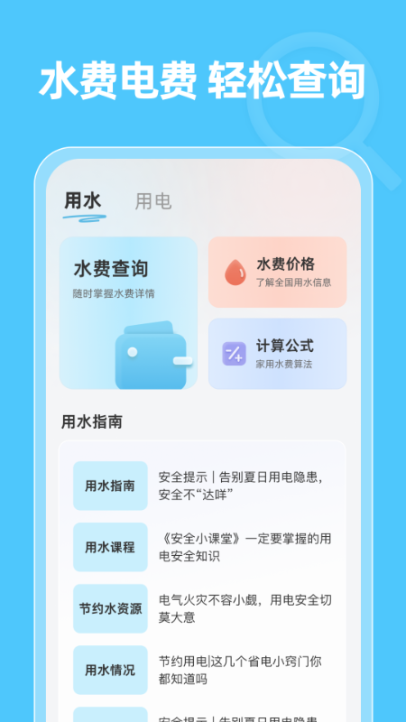 应用详情:水电畅查通是一款集水费电费查询、价格与计算公式查看、电器功耗大全、用水用电...