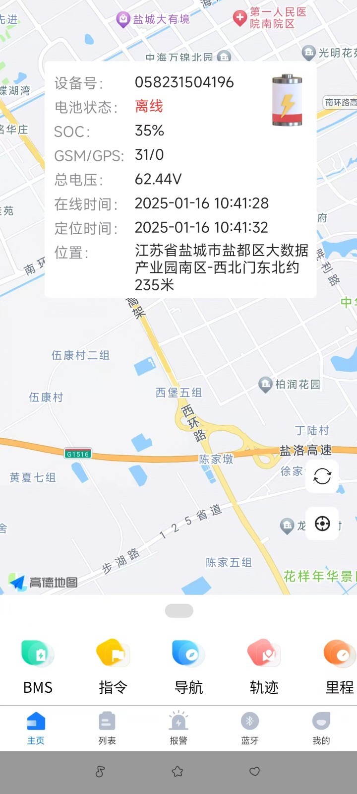 应用详情:查看电池设备信息,包含GPS、蓝牙,实时查看设备基本参数,即电压、电流、功率等参数,查看GPS的定位信息跟实时轨迹。