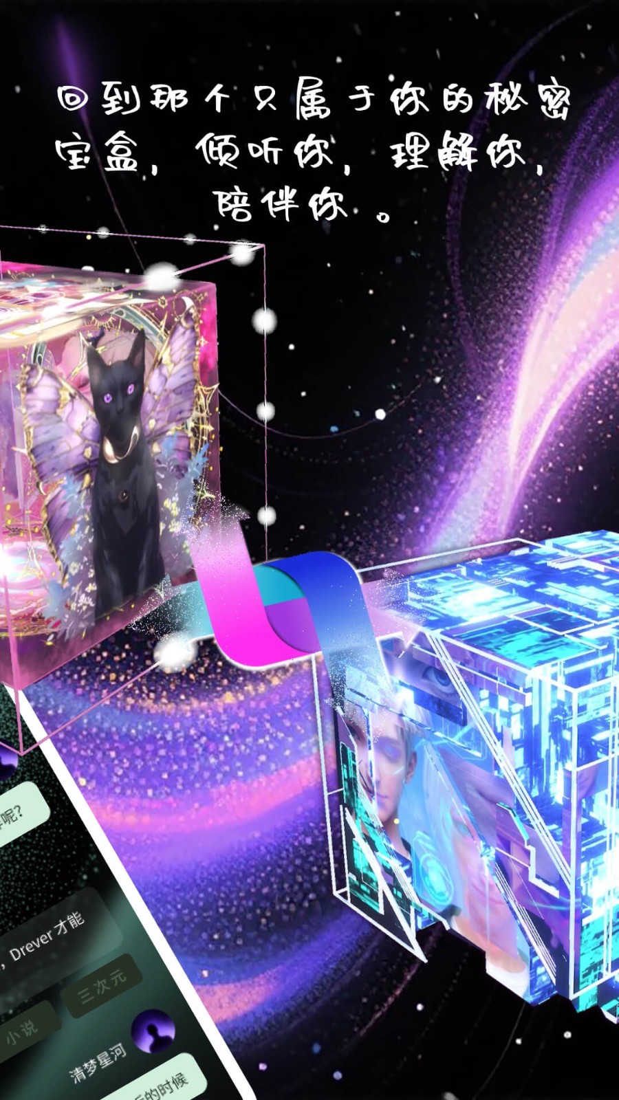 以“宇宙魔法盒”为灵感,创造一个既熟悉又奇异的疗愈空间。你只需轻轻点开盒盖,心绪就会像星尘一样缓缓流动,被看见,也被理解。