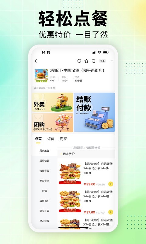 1.特惠外卖:线上线下一个价,天天都是美食节!