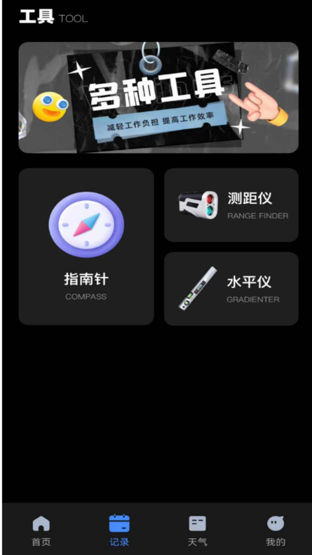 该应用程序集成了天气、工具和测量功能,提供了多种实用工具和信息