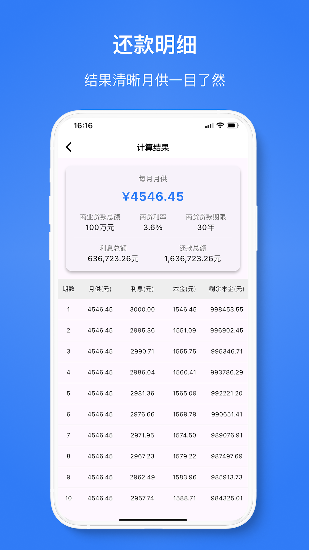 应用详情:房贷计算器,专业的房产贷款月供计算软件,智能规划房贷每一步!