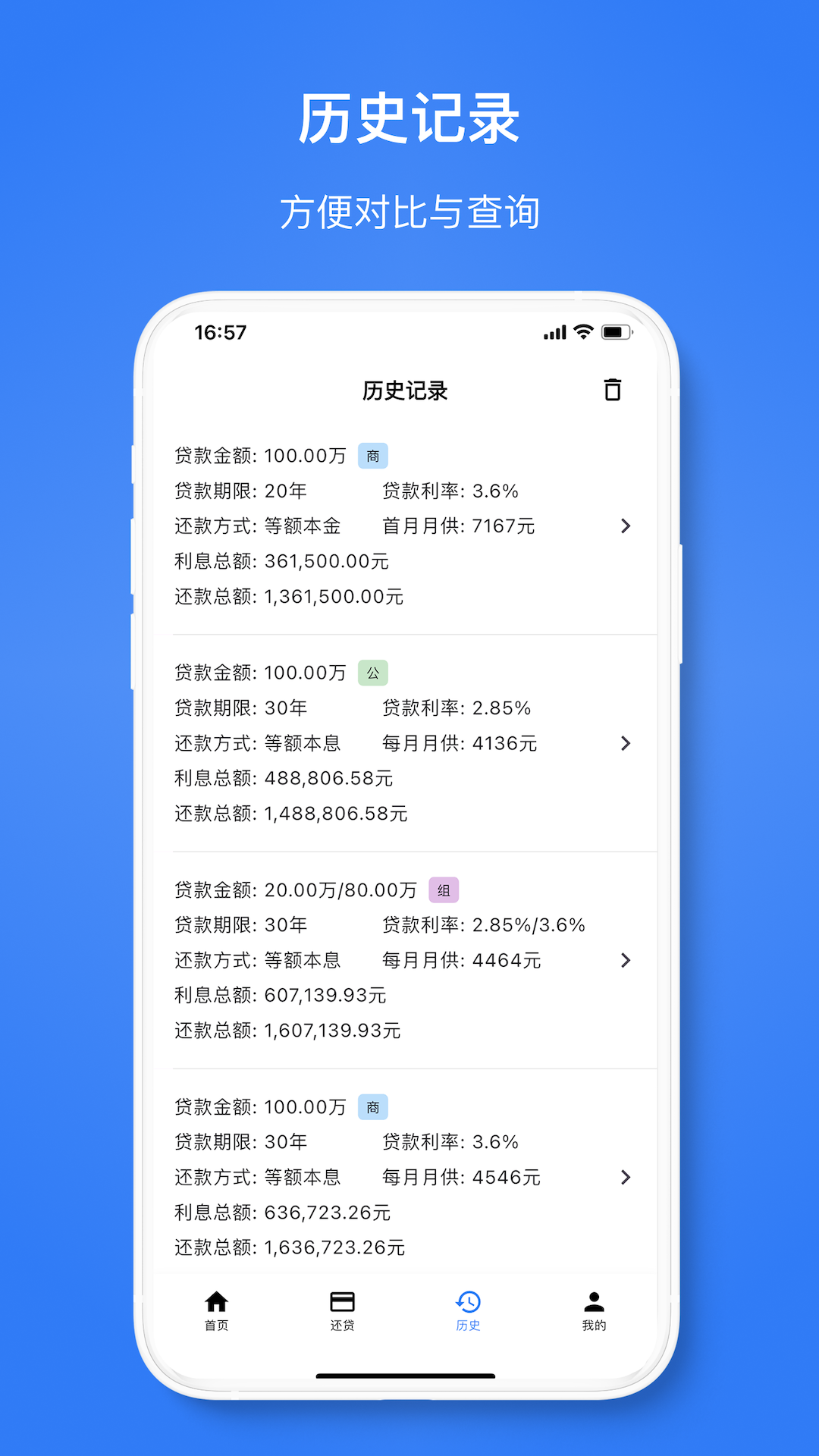 -多种贷款计算:全面覆盖商业贷款、公积金贷款、组合贷款,按需选择,计算更贴合需求;