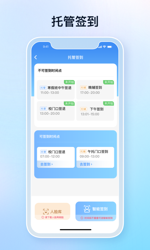 “定飞签到端”APP为用户提供一个快速高效打卡签到的应用管理平台,可同时支持辅导中心、教培机构、幼儿园等学员签到打卡,老师签到打卡等功能服务。