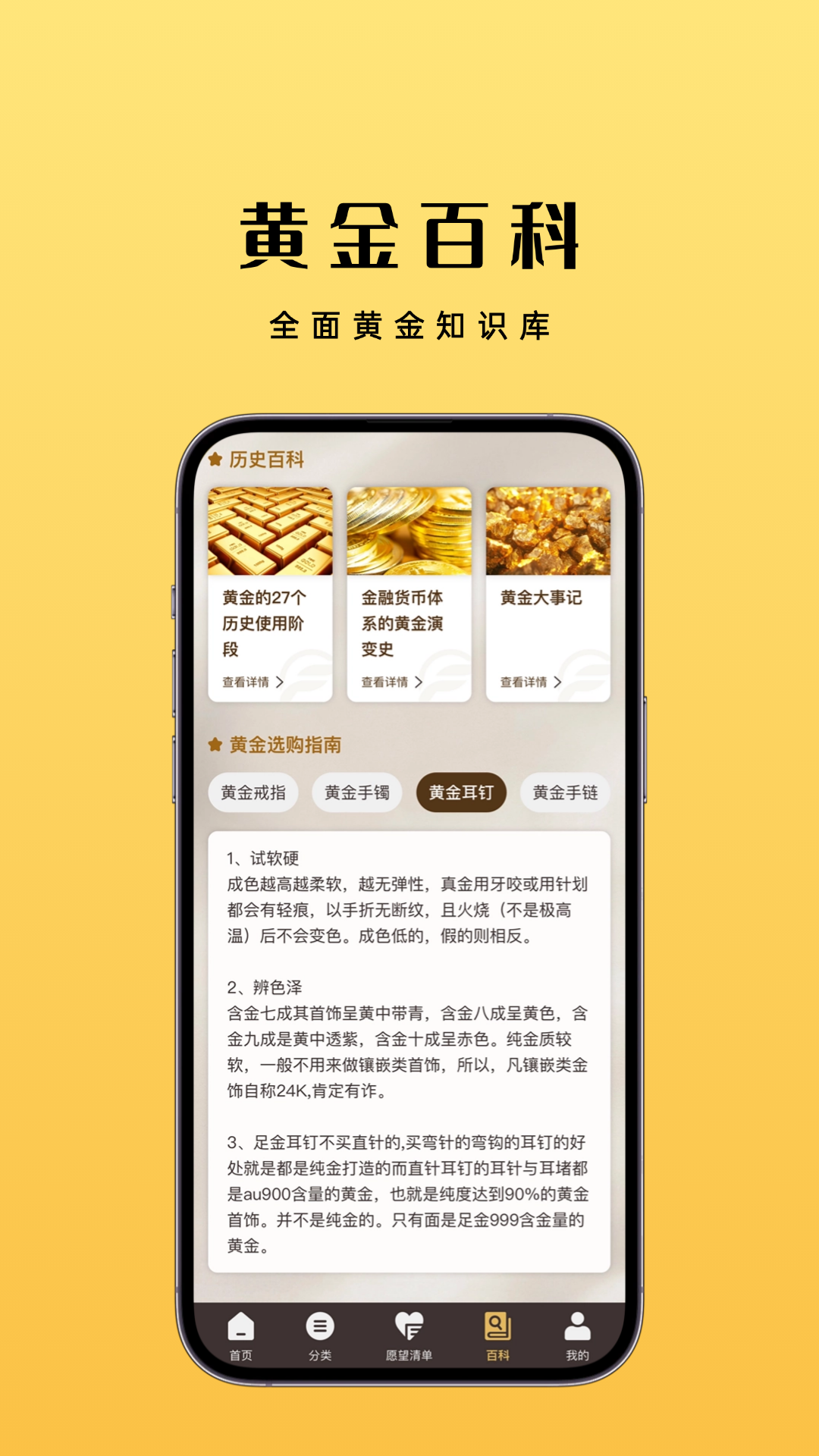应用详情:富得黄金为您提供全面的黄金百科,从足金、硬金、到5G黄金,详细解析各类黄金的...