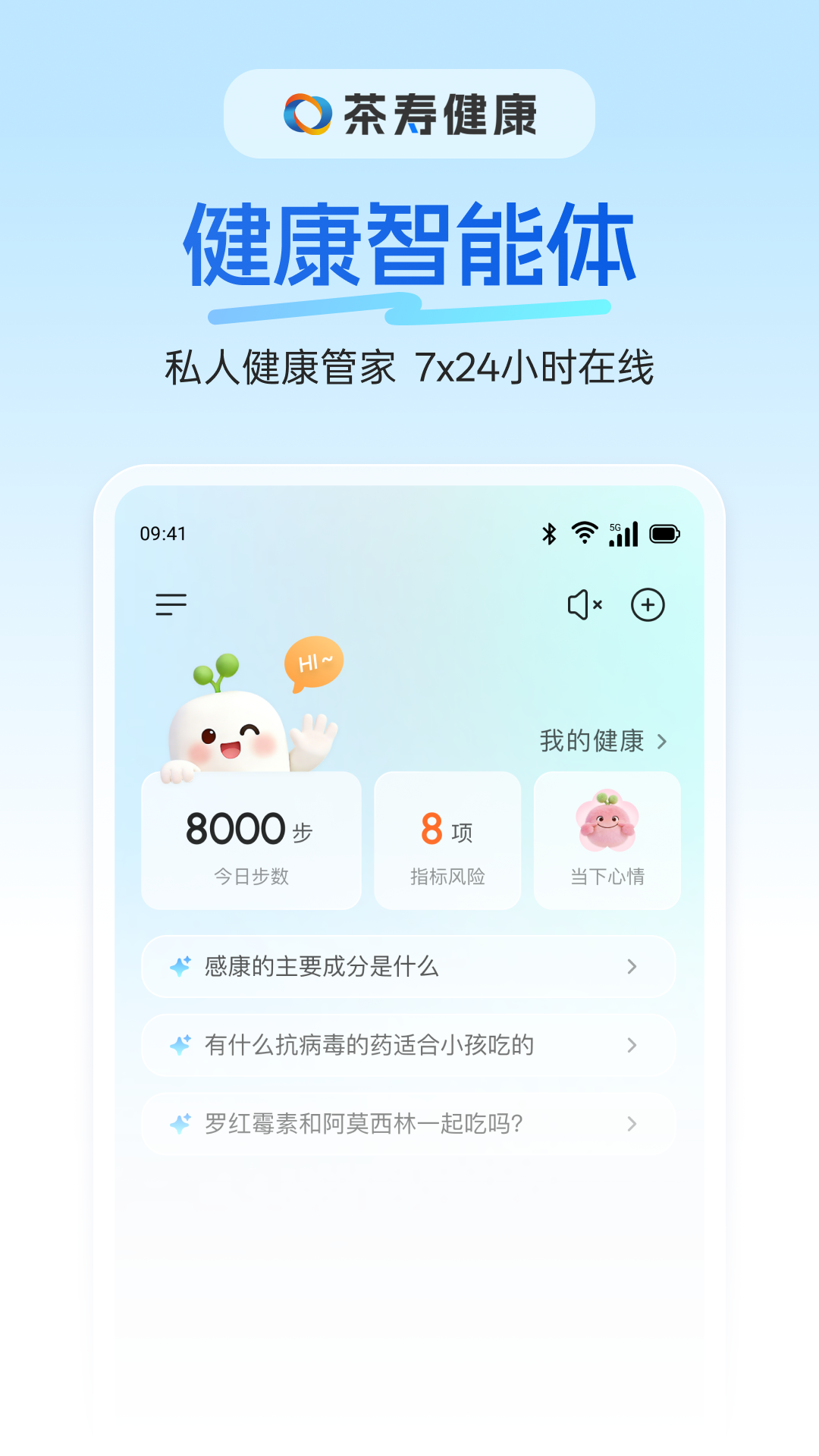 应用详情:茶寿健康——您的专属智能健康管家。我们为用户打造AI智能专业健康服务,涵盖家...