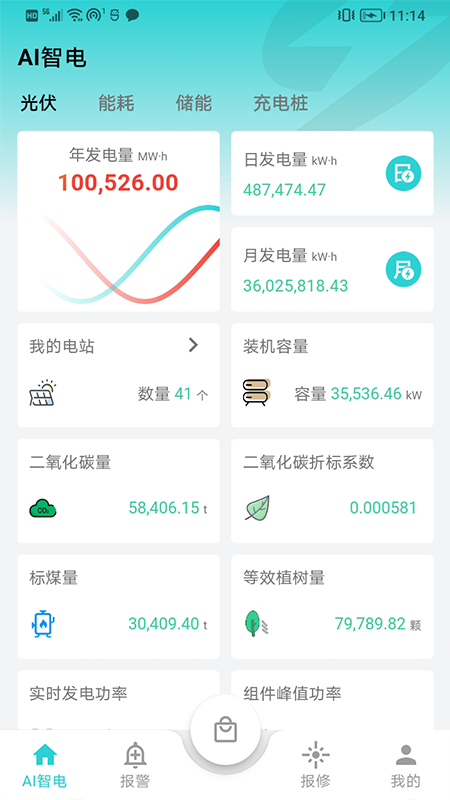 该应用主要用于监测公司的光储充项目。其主要功能包括:展示光伏电站运行状态和收益统计,储能站点的运行状态监测和收益统计,充电桩站点的运行状态及收益统计。