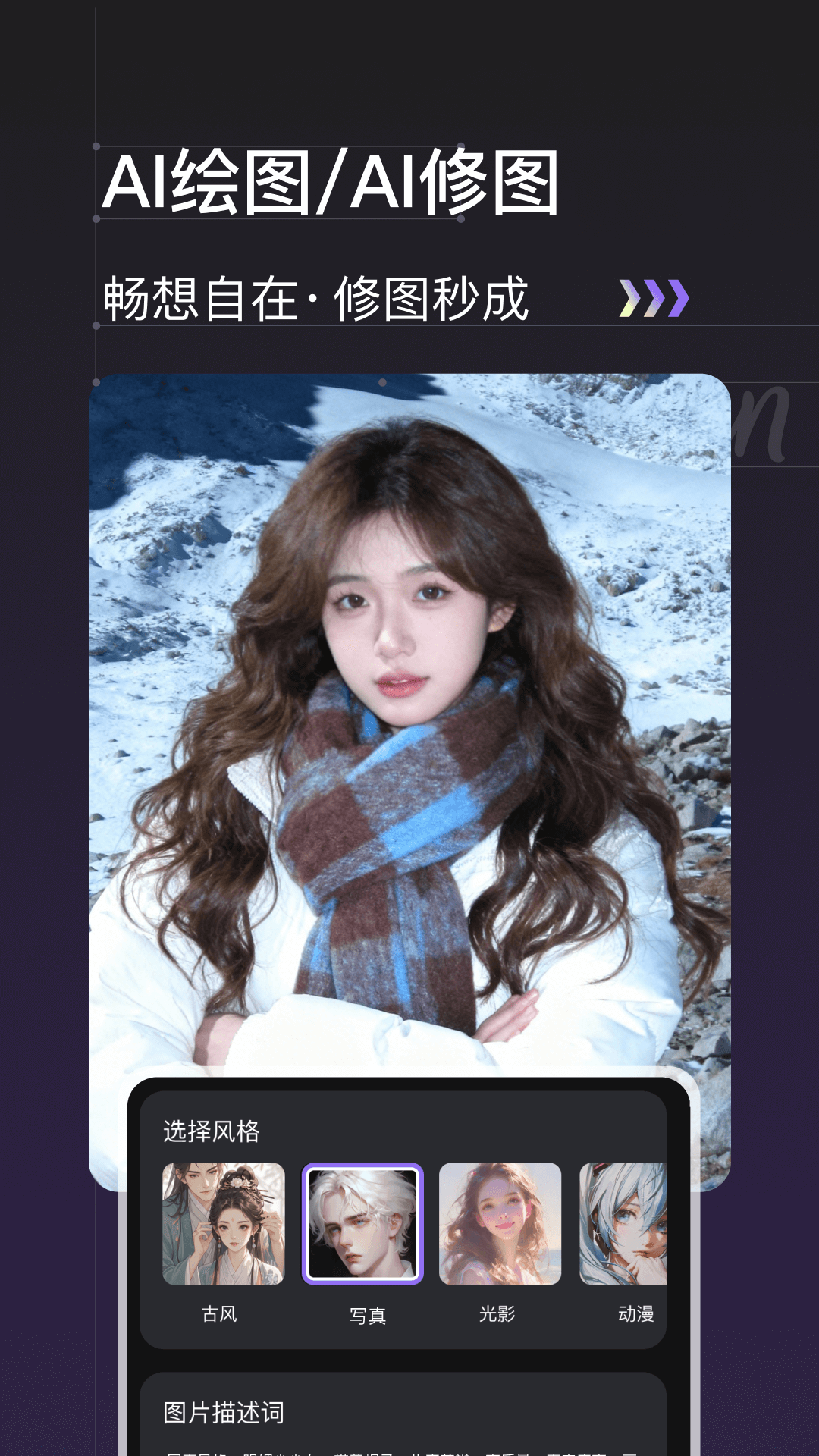 核心功能丰富:支持文生视频与图生视频,只需提供文字描述或图片,就能快速生成精彩视频,AI 润色功能还能优化视频,提升逼真度;AI 图片生成含写实、卡通等多样风格模板,也支持自定义,可调整颜色、线条等参数;AI 音乐制作对爱好者很友好,提供歌词和歌曲风格,就能制作专属 AI 歌曲,满足不同曲风需求。