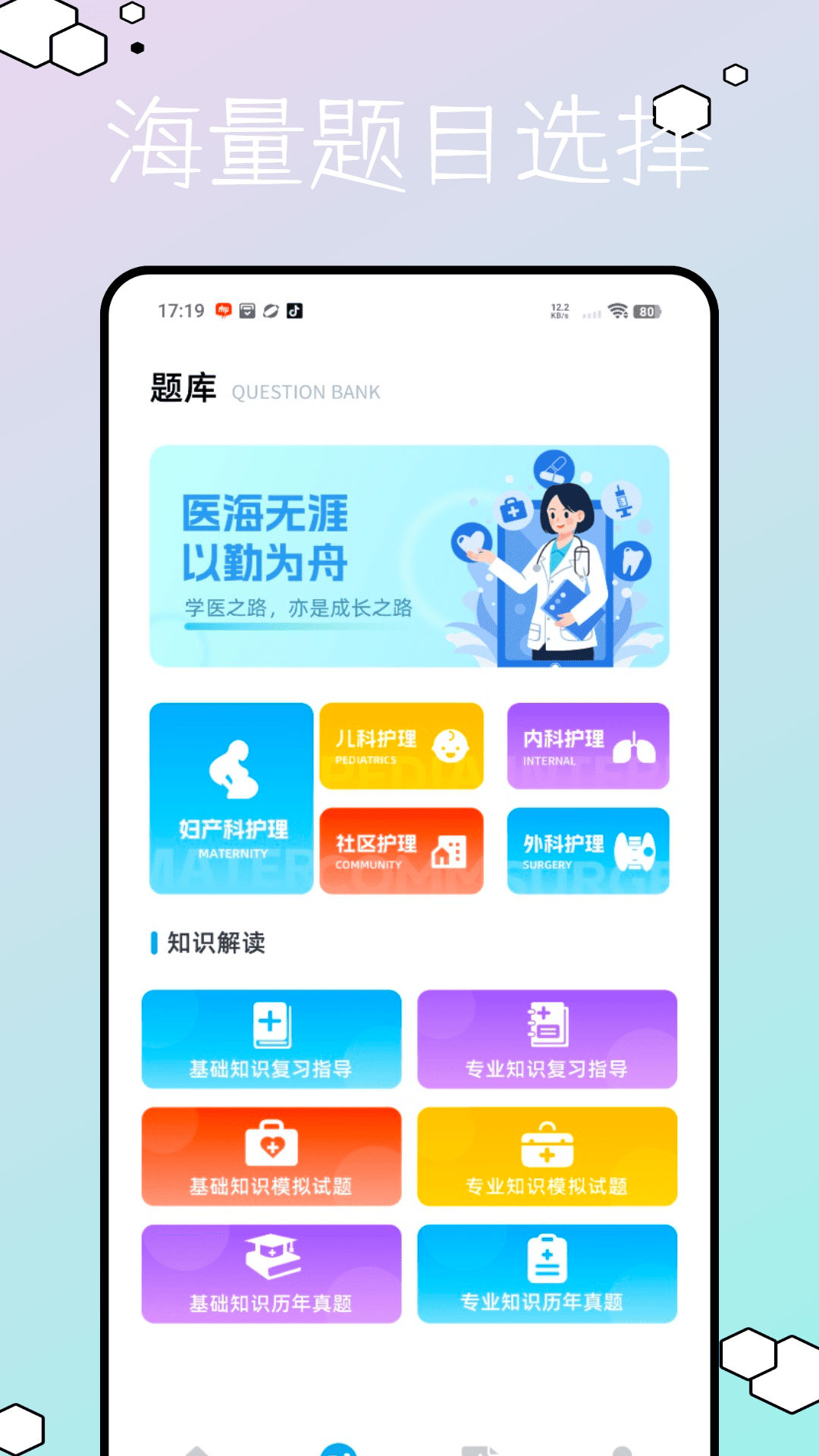 圣才题库是一款集齐医保科普、医护题目、医保政策等知识为一体的软件。里面的基础课:学习巩固医护基础知识。专业课:专业知识的复习指导、练习题练习等。20道禁毒知识的习题练习等。能够帮助医护行业的学习,让医护行业能够稳定高效的提升成绩,扩宽知识储存。也能够帮助群众普及医保知识和政策,让更多的人了解医保。