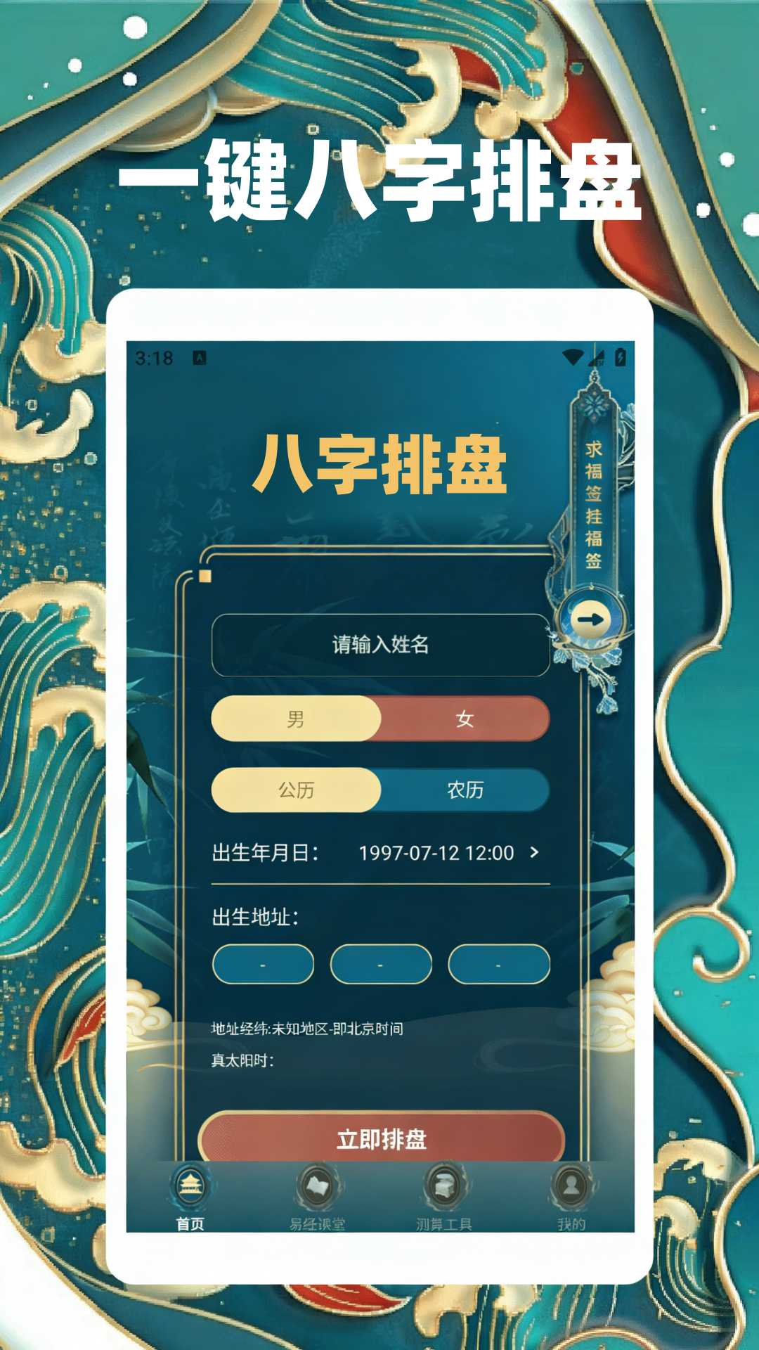 应用详情:洪铟八字排盘是一款为国学爱好者提供的专业的八字排盘工具,输入姓名,出生日期...