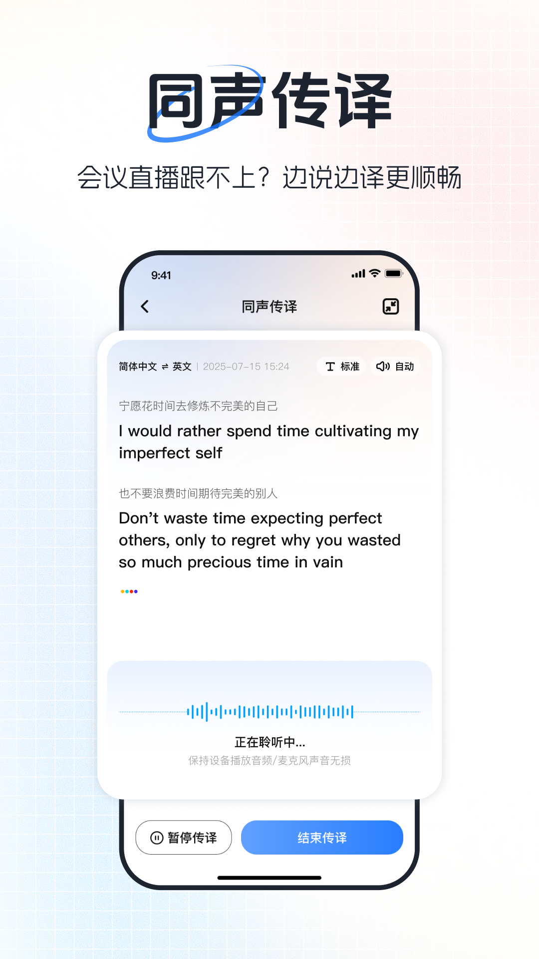 • 同声传译:戴耳机边说边译,英文演讲、街头问价零等待。